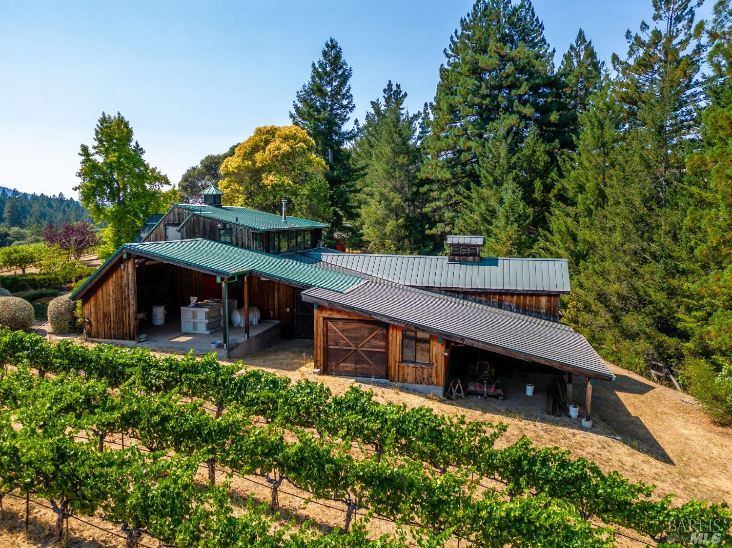 Nestled between lush forests & rolling deep end vineyards, Romani Vineyards can be found. A complete wine country compound, this offering encompasses 21 +/- acres of gentle land, with 5 acres planted to a combination of award winning Pinot Noir & Pinot Gris vines. Resting slightly above the valley floor, the improved area of the property captures incredible layered views of rolling vineyards & distant redwood forests. Two separate dwellings combine to create an ideal compound. The main residence includes a comfortable living area with open concept kitchen. Off the main living area, is a secondary living area warmed by a wood stove with sleeping loft above. A dining area, flooded with natural light & rich with views, connects the primary suite. An indoor pool allows for four season swimming & opens to an enchanting landscape, with pathways, bocce court & a redwood forest backdrop. Adjacent the main home is the on-site winery building with studio apartment above. The lower level was designed with intention, taking advantage of gravity & geothermal cooling to enhance the winemaking process. A tasting area & storage area/barrel room round out the space. The balance of the land is forested, cascading towards a creek & pond. Romani Vineyards is a perfect expression of Anderson Valley.