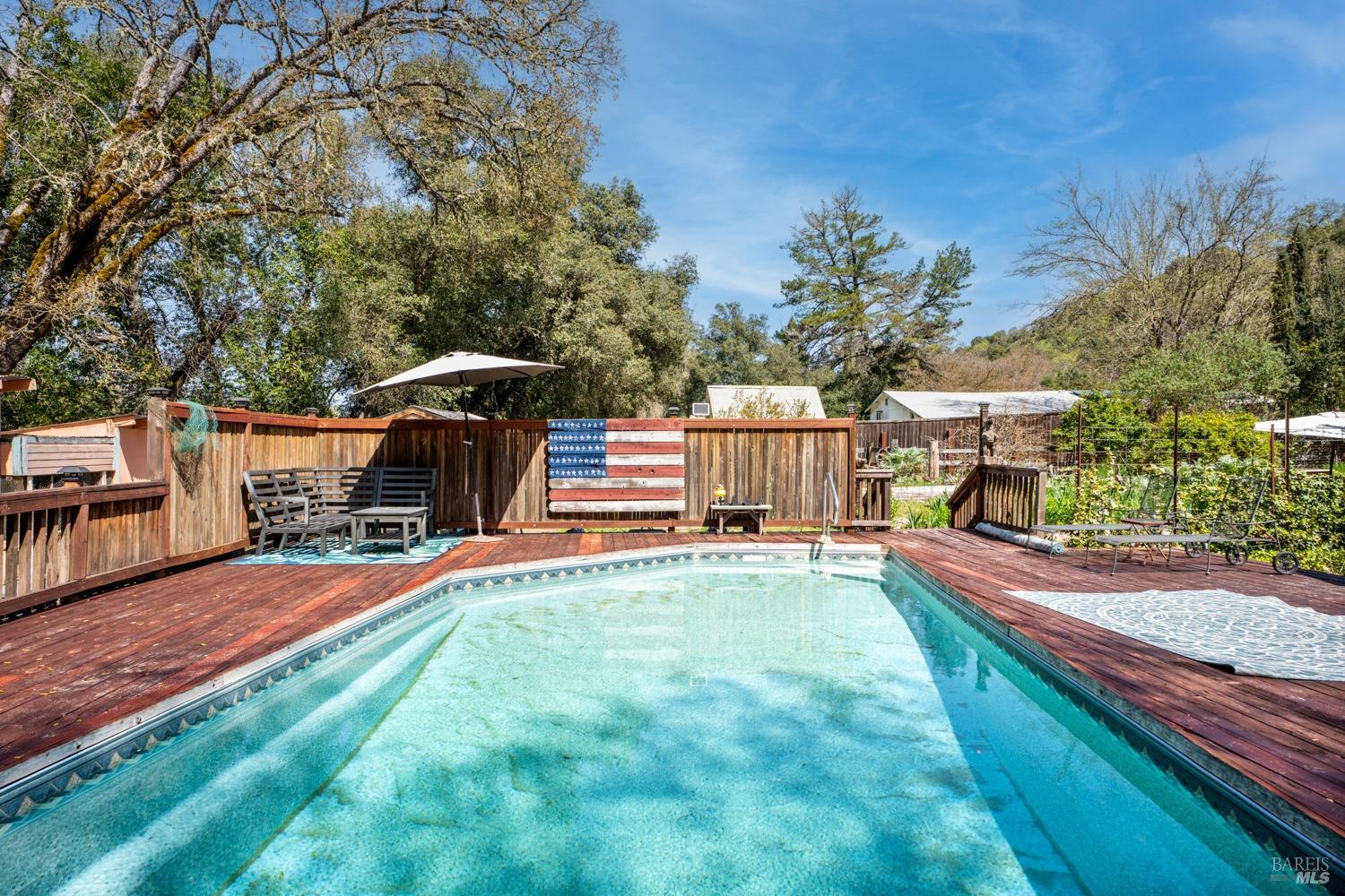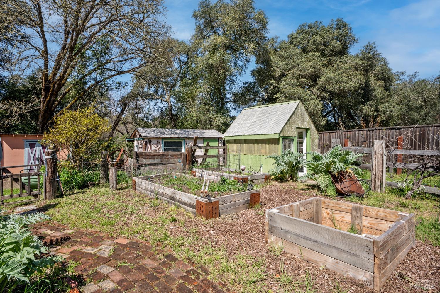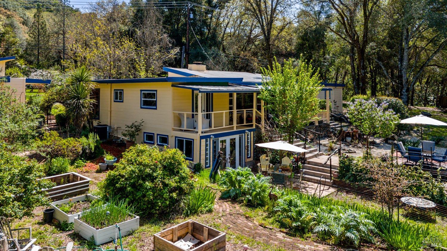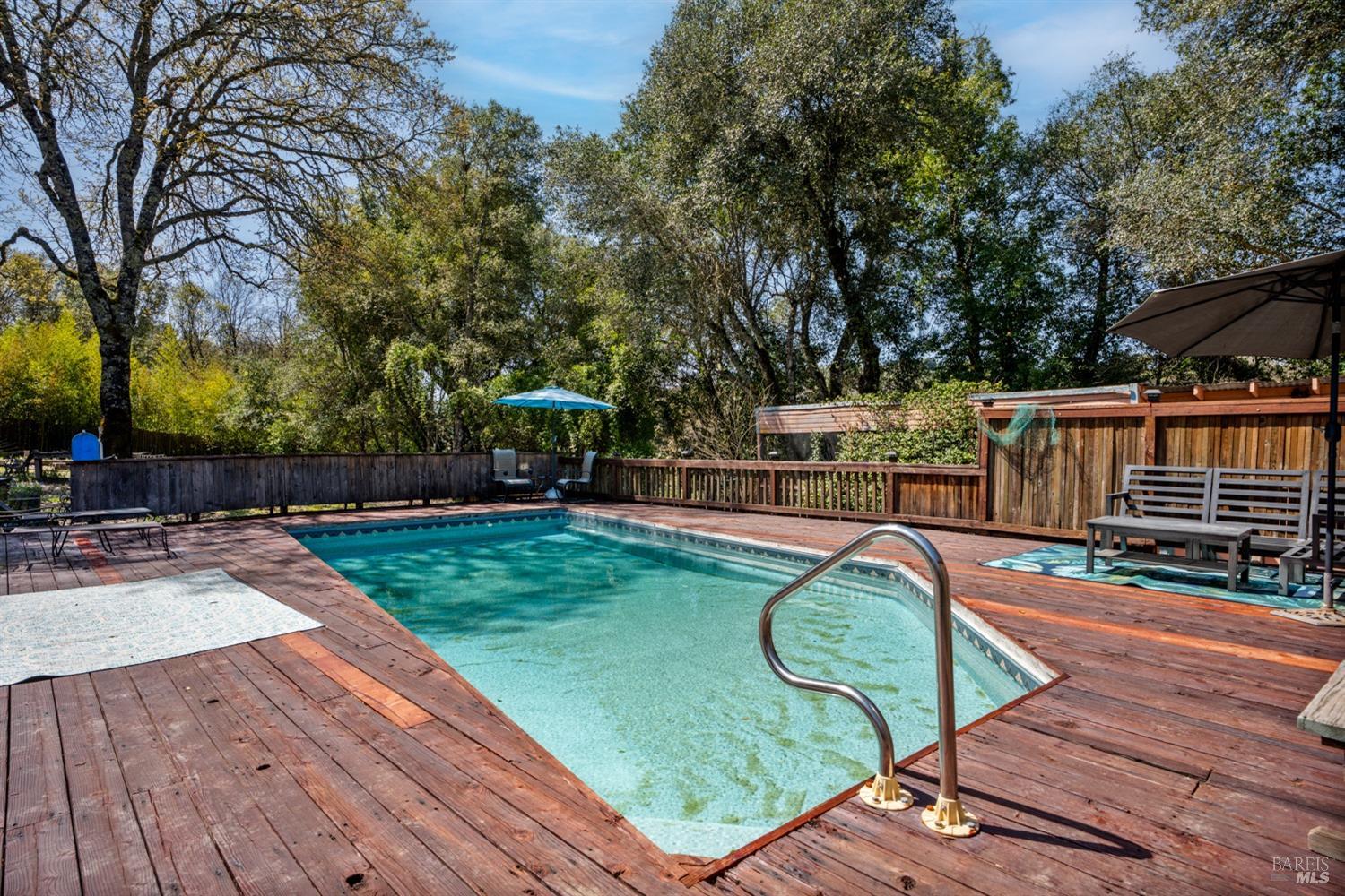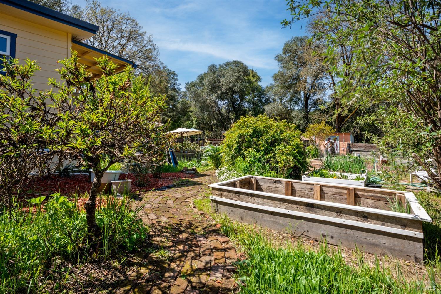 More than a home, this property caters to those looking to harness a farm-to-table lifestyle in a gorgeous setting. Bordering the riparian corridor of the Russian River, the location is ideal, taking advantage of a serene and private landscape, yet within close proximity to the amenities of town. The main home includes 2 bedrooms and 1 bath with bonus room, root cellar and covered deck overlooking the inviting pool, spacious redwood pool-deck and plentiful garden beds. A second 1 bedroom and 1 bath home is adjacent the main home, ideal for guests, extended family or as a rental. Additionally, the detached custom 2-car garage includes a guest suite with private bath. The site includes 2 septics and a productive well. The land features a mature orchard with a variety of trees, including cherry, apple, pear, fig and much more. Fenced and cross-fenced, the property is ideal for animals of all kinds. Multiple outbuildings offer ample storage & utility, while the custom chicken coup delivers eggs daily. Reproduction of this homestead would be cost prohibitive in today's economy. The present owner has created a unique opportunity for those looking for a peaceful setting, which provides food, shelter and an agrarian lifestyle. Assumable VA loan for qualified buyers.