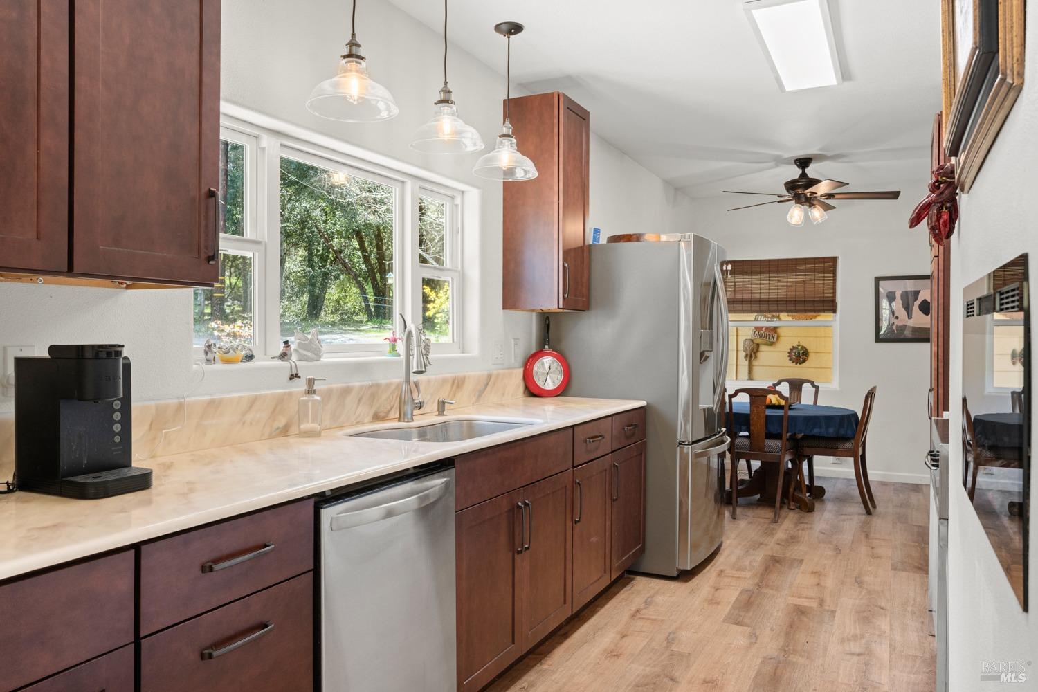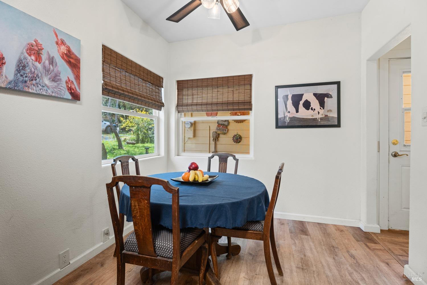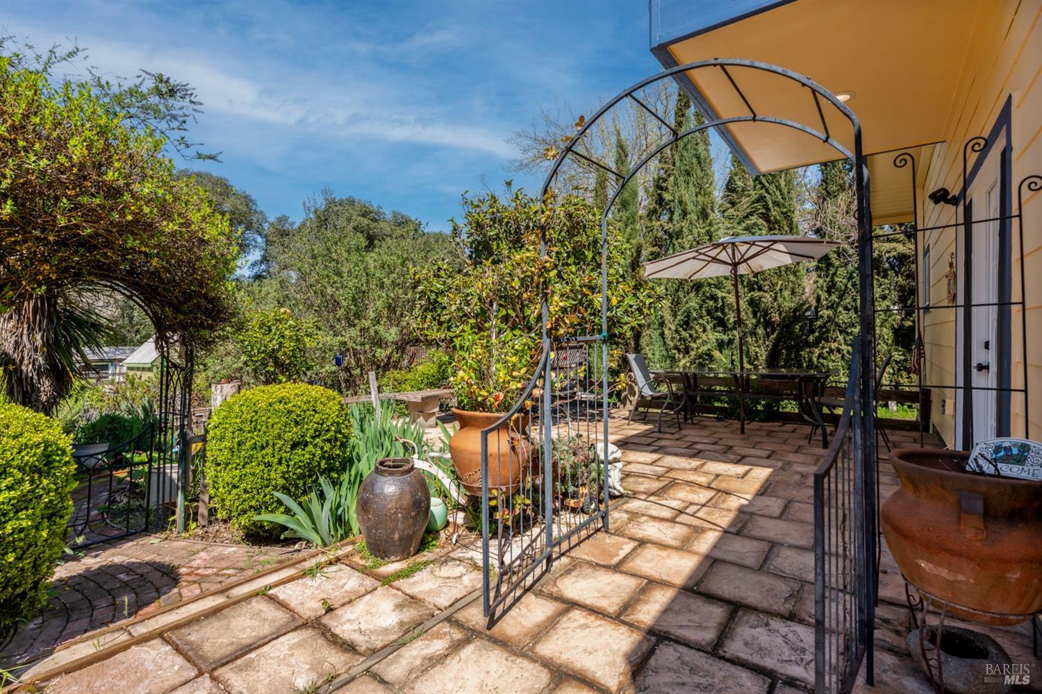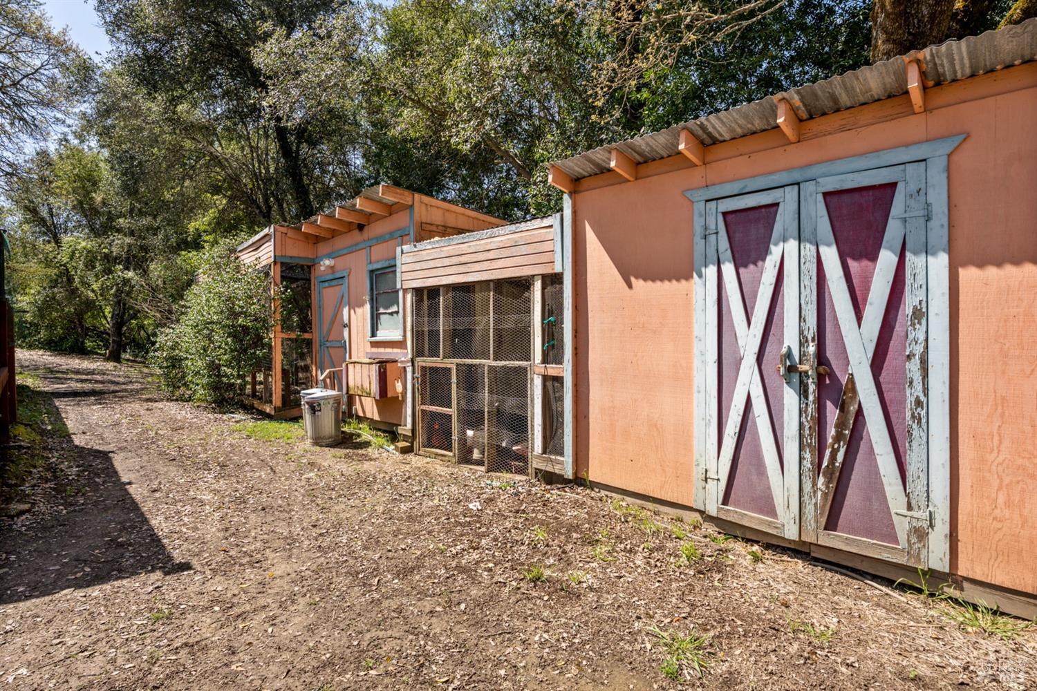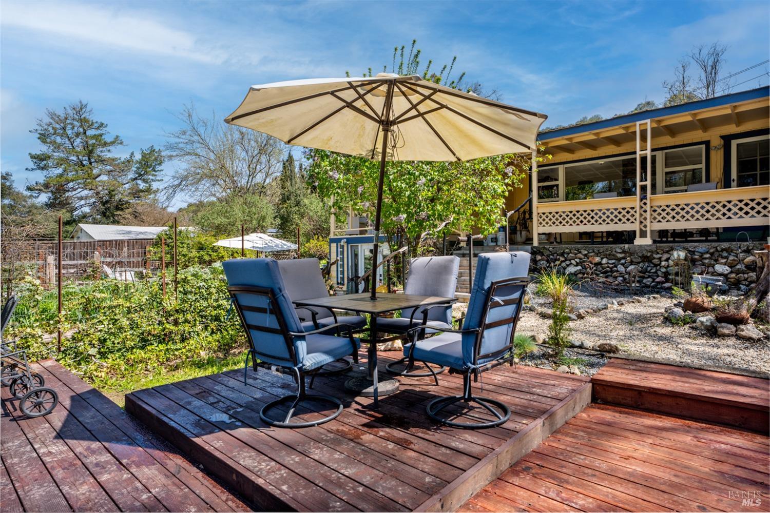 More than a home, this property caters to those looking to harness a farm-to-table lifestyle in a gorgeous setting. Bordering the riparian corridor of the Russian River, the location is ideal, taking advantage of a serene and private landscape, yet within close proximity to the amenities of town. The main home includes 2 bedrooms and 1 bath with bonus room, root cellar and covered deck overlooking the inviting pool, spacious redwood pool-deck and plentiful garden beds. A second 1 bedroom and 1 bath home is adjacent the main home, ideal for guests, extended family or as a rental. Additionally, the detached custom 2-car garage includes a guest suite with private bath. The site includes 2 septics and a productive well. The land features a mature orchard with a variety of trees, including cherry, apple, pear, fig and much more. Fenced and cross-fenced, the property is ideal for animals of all kinds. Multiple outbuildings offer ample storage & utility, while the custom chicken coup delivers eggs daily. Reproduction of this homestead would be cost prohibitive in today's economy. The present owner has created a unique opportunity for those looking for a peaceful setting, which provides food, shelter and an agrarian lifestyle. Assumable VA loan for qualified buyers.