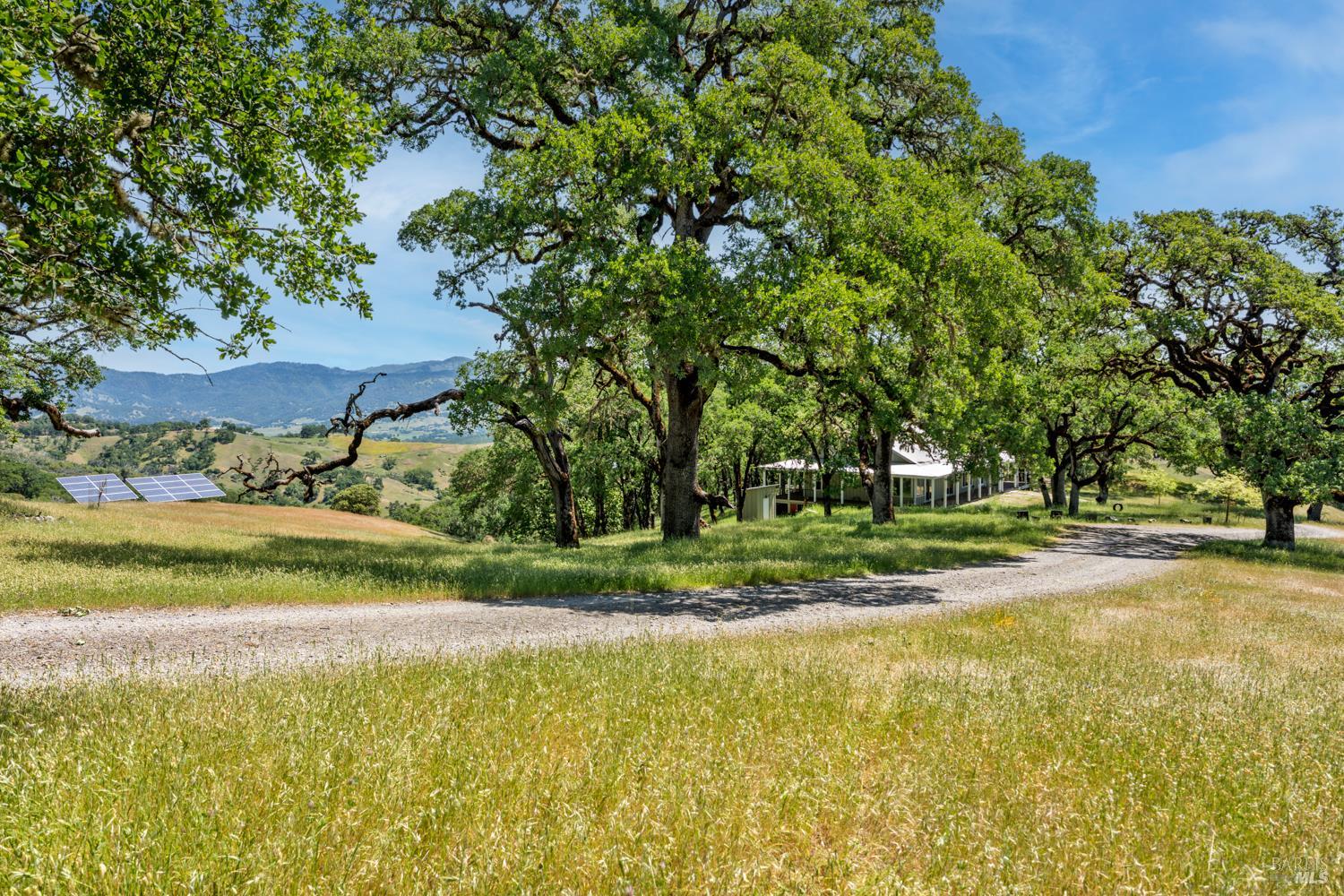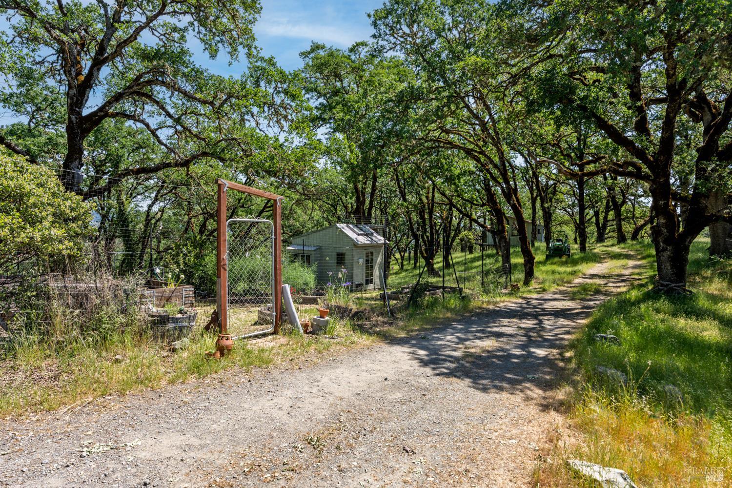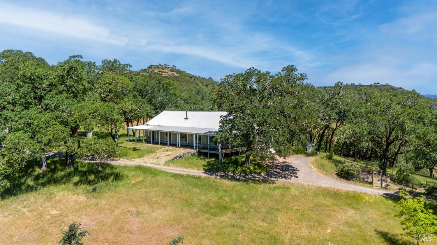 A private 20-acre retreat located approximately 15 minutes from the amenities of town, among sculpted oaks and brilliant grasslands. At the end of a meandering and scenic driveway, you arrive at an enticing ranch-style home with covered wrap-around porches and IPE decking. Views are easy to come by in all directions, with awe-inspiring views of Lake Mendocino to the southwest. The interior of the home is open and spacious. The main living area blends nicely with the kitchen and dining areas, offering plenty of window exposure to capture the views. Grounding Saltillo Tile floors, a cozy woodstove, loft space above and open beam ceilings create ambiance. The balance of the approximately 2,000 square foot home is divided into 2 bedrooms, an office (which could be used as a 3rd bedroom), 2 bathrooms and functional utility/laundry room. The property benefits from grid-tied solar, offsetting energy costs. Water is available via an onsite well with ample storage. Multiple storage buildings are perfect for tools and personal effects. The land is gentle and pristine, creating an unrivaled setting. 7580 Black Bart Trl. offers an opportunity to get back to the land with the comforts and convenience of modern living.