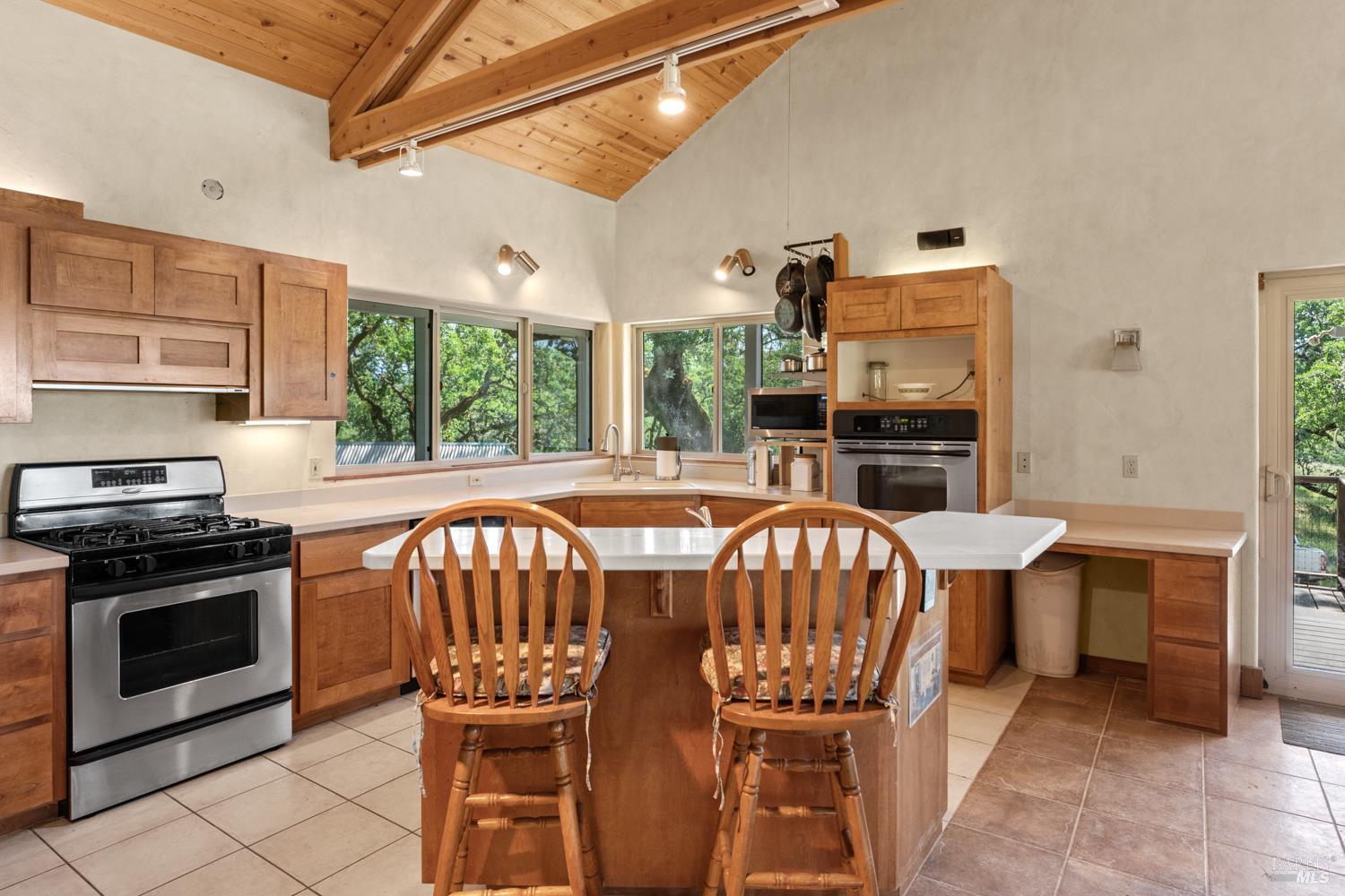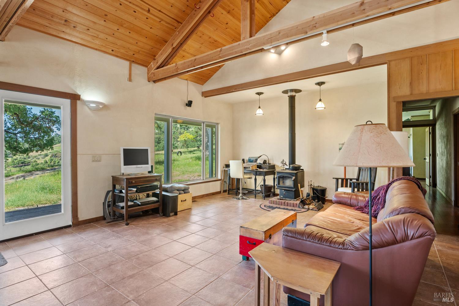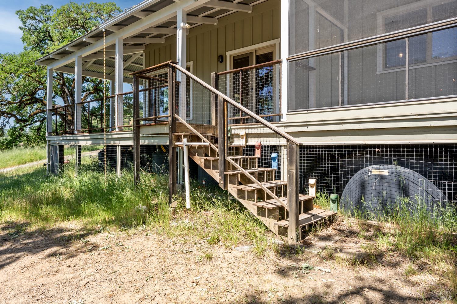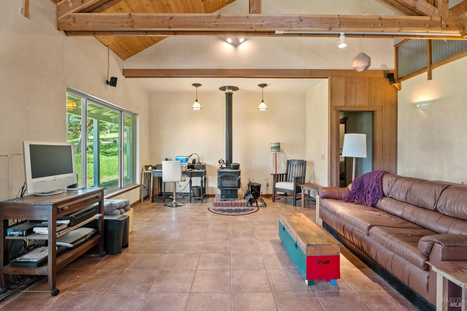 A private 20-acre retreat located approximately 15 minutes from the amenities of town, among sculpted oaks and brilliant grasslands. At the end of a meandering and scenic driveway, you arrive at an enticing ranch-style home with covered wrap-around porches and IPE decking. Views are easy to come by in all directions, with awe-inspiring views of Lake Mendocino to the southwest. The interior of the home is open and spacious. The main living area blends nicely with the kitchen and dining areas, offering plenty of window exposure to capture the views. Grounding Saltillo Tile floors, a cozy woodstove, loft space above and open beam ceilings create ambiance. The balance of the approximately 2,000 square foot home is divided into 2 bedrooms, an office (which could be used as a 3rd bedroom), 2 bathrooms and functional utility/laundry room. The property benefits from grid-tied solar, offsetting energy costs. Water is available via an onsite well with ample storage. Multiple storage buildings are perfect for tools and personal effects. The land is gentle and pristine, creating an unrivaled setting. 7580 Black Bart Trl. offers an opportunity to get back to the land with the comforts and convenience of modern living.