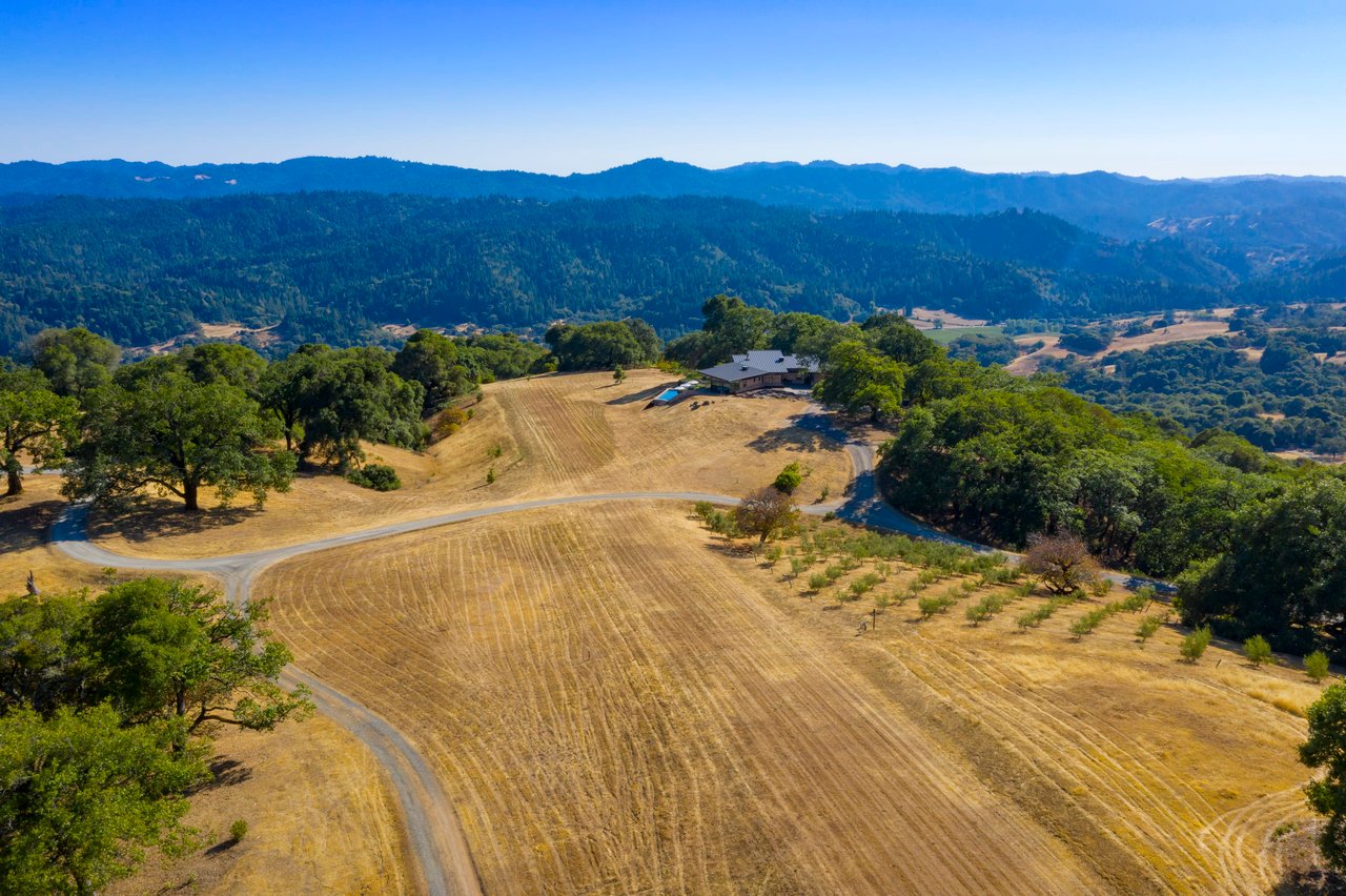 Much of the property is exposed to the south, taking in expansive and dramatic views of the coastal ranges. Sweeping views encompass hillside vineyards and the untouched Maillard Ranch, a large tract of land recently put under conservation, protecting the viewshed for years to come. An internal road network connects the many features of the property. The care and preservation of the land are apparent as you traverse the road network. The main driveway meanders through manicured oak and madrone forests, leading to the main developed area where the home and above-mentioned improvements are located. Offshoots of the road system lead to clandestine garden locations, an equipment shed where the ranch’s equipment is housed and a small rustic, yet well kept, cabin with bathhouse is nestled near one of the properties many seasonal creeks.