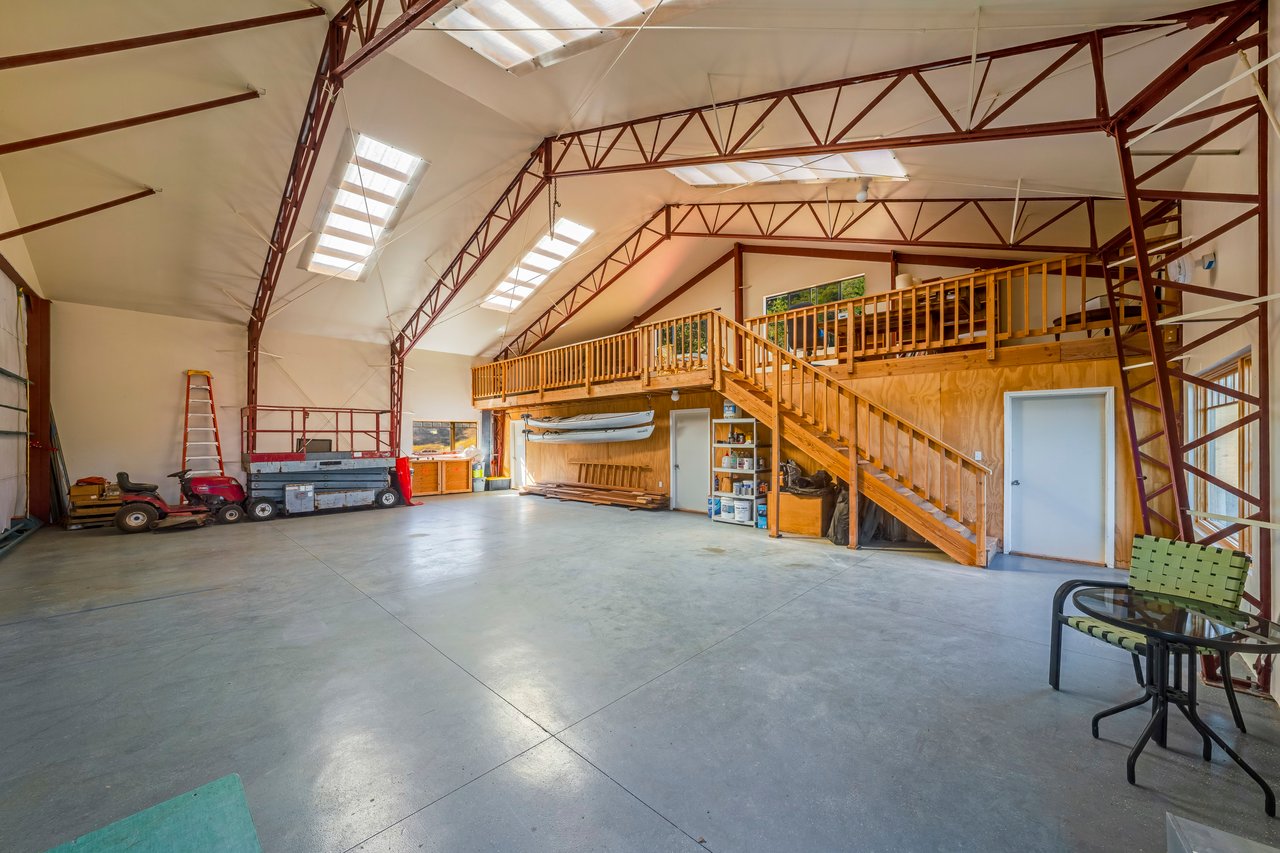 A grass airstrip separates the main residence from the remainder of the central improvements. Fit for the most discerning and skilled pilots, the airstrip leads to a roughly 2,000 square foot hangar, with automated doors, multiple interior rooms, and a mezzanine for storage or other uses.