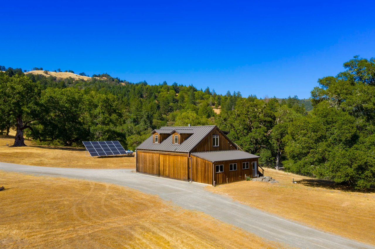 Water infrastructure consists of two productive wells, an impressive spring housed in a mature bay tree, and ample water storage. There is also a small pond on the property that benefits from the spring’s overflow. Private septic systems service the improvements which contain bathroom facilities. The entire property is powered by the newly upgraded solar system with a brand new Kohler 24 KW propane backup generator, new lithium Discovery batteries, and new inverters. The off-grid system is hassle-free.
