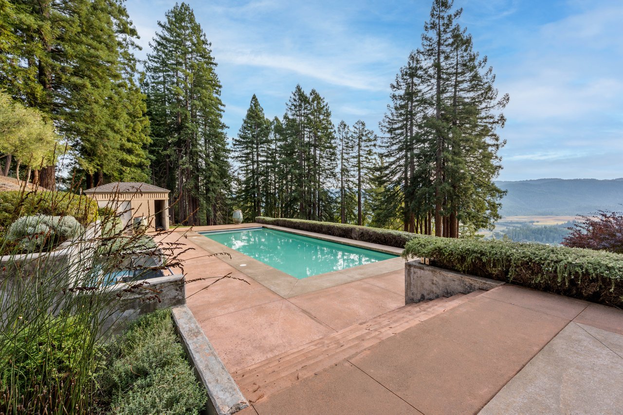 Though secluded and peaceful, the location remains remarkably convenient—just minutes from the region’s acclaimed wineries, tasting rooms, and culinary destinations, approximately 2.5 hours from the Bay Area, and only 30 minutes to the incredible Mendocino Coast.