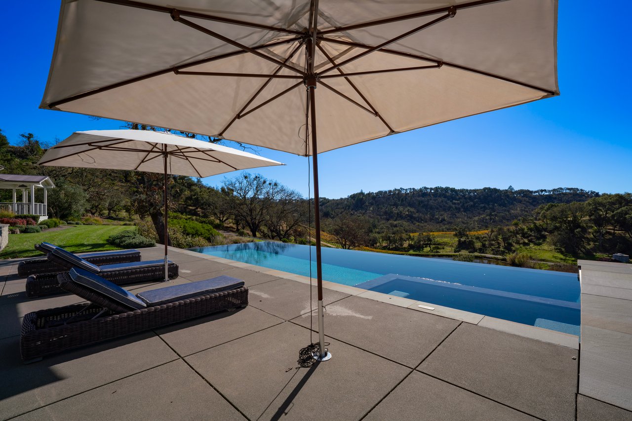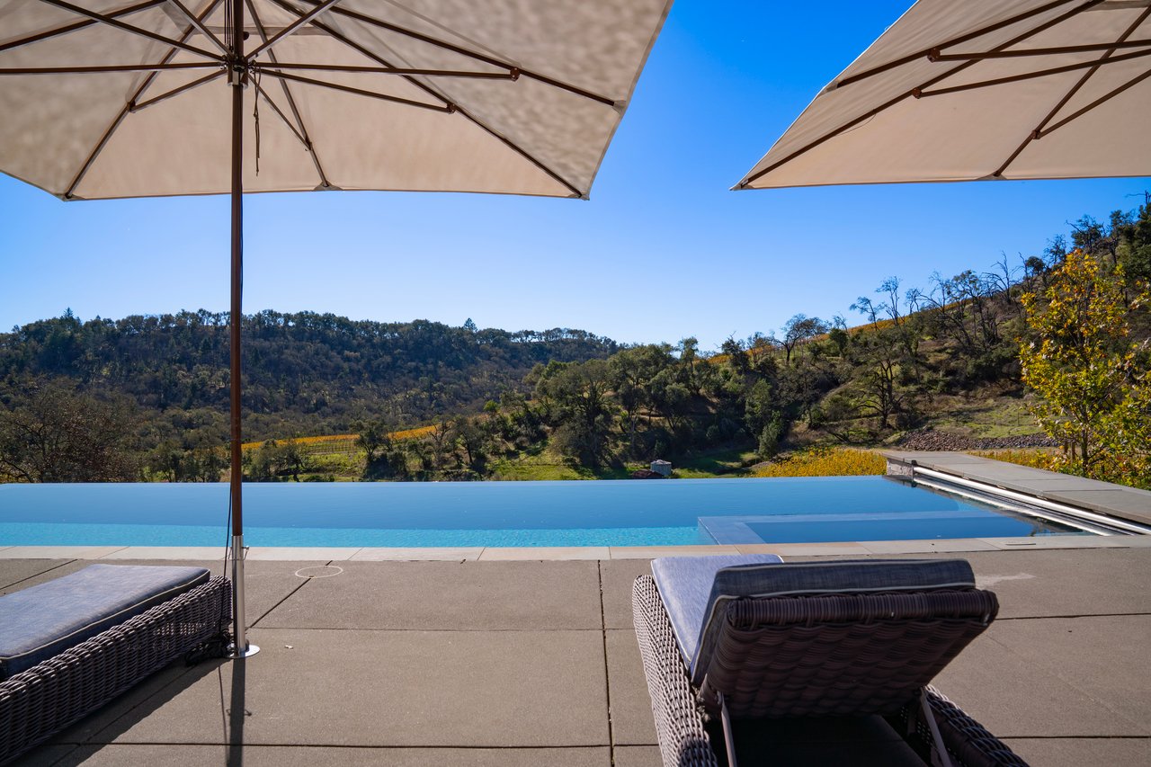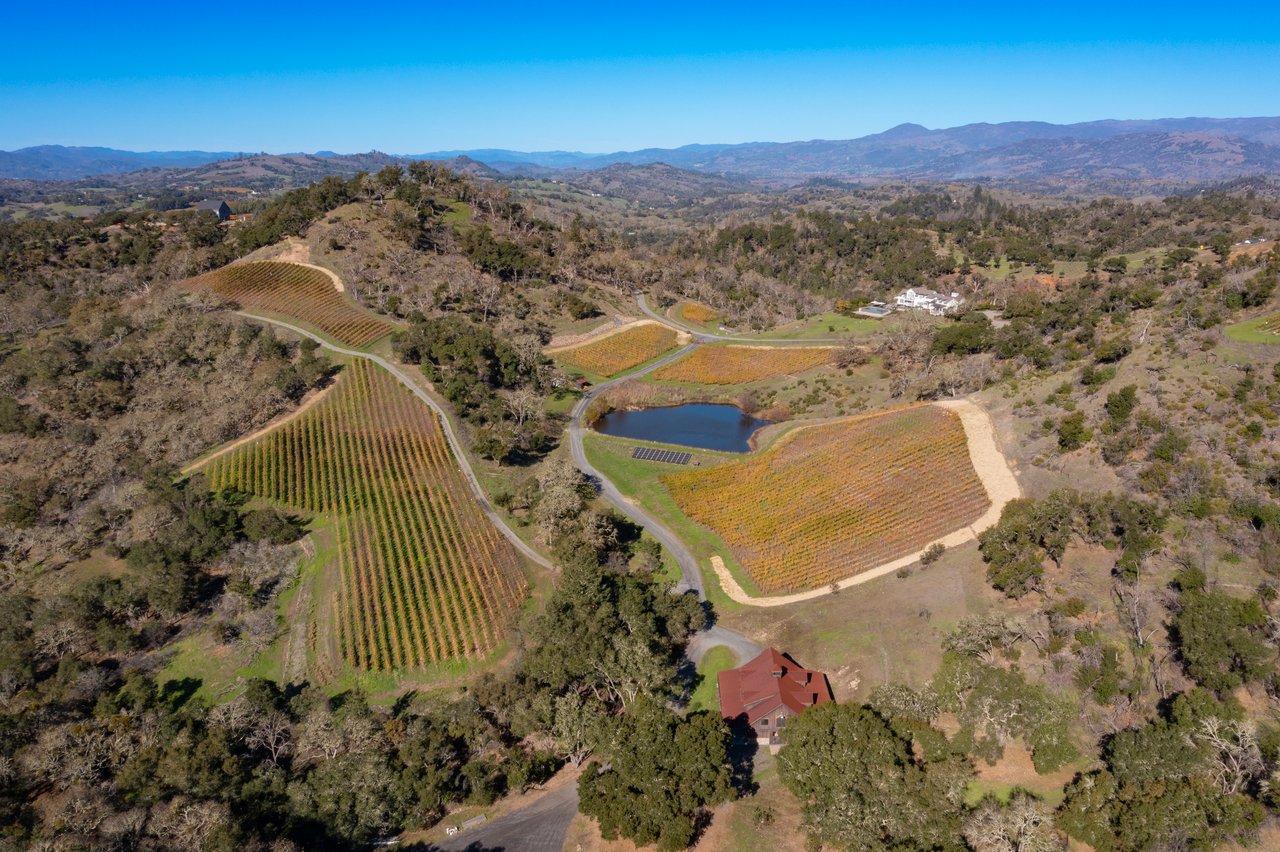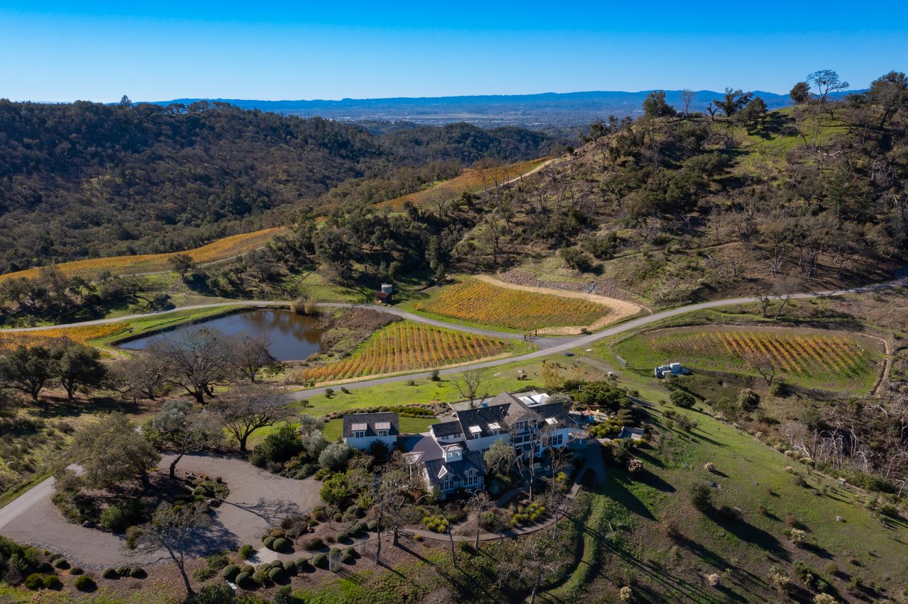 A lifestyle property of remarkable scale, the estate includes 7.5 acres of premium Cabernet Sauvignon under lease, providing the benefits of vineyard living with effortless ownership. A five-mile network of developed trails winds through the land, ideal for hiking, mountain biking, or horseback riding, each route revealing fresh perspectives at every turn. Seasonal creeks, open meadows, and a pristine reservoir below the residence enrich the habitat for waterfowl and wildlife, adding texture and tranquility to the viewshed.