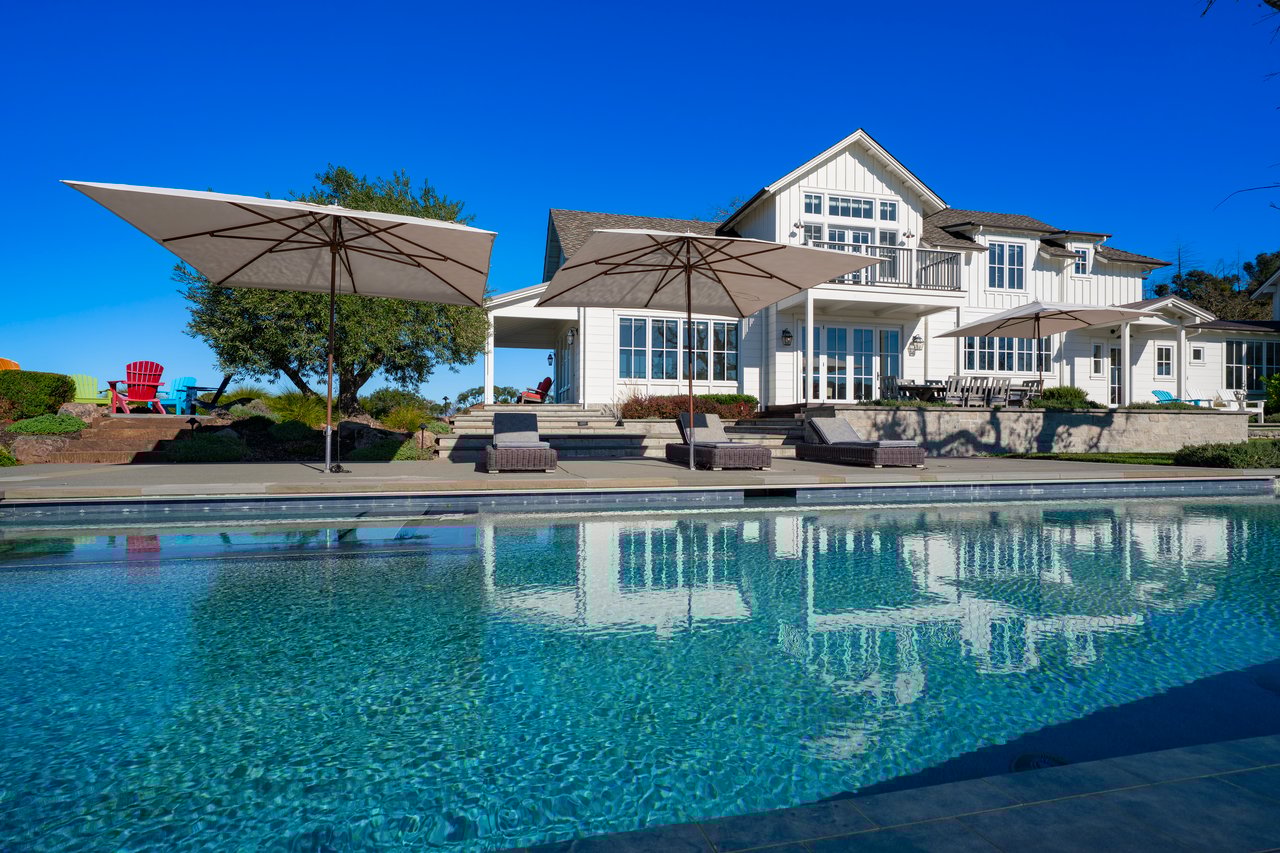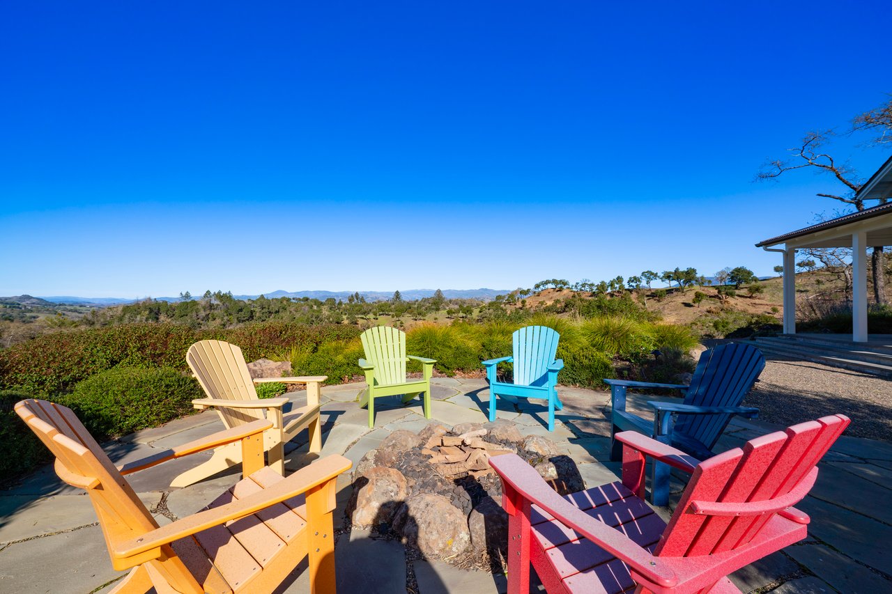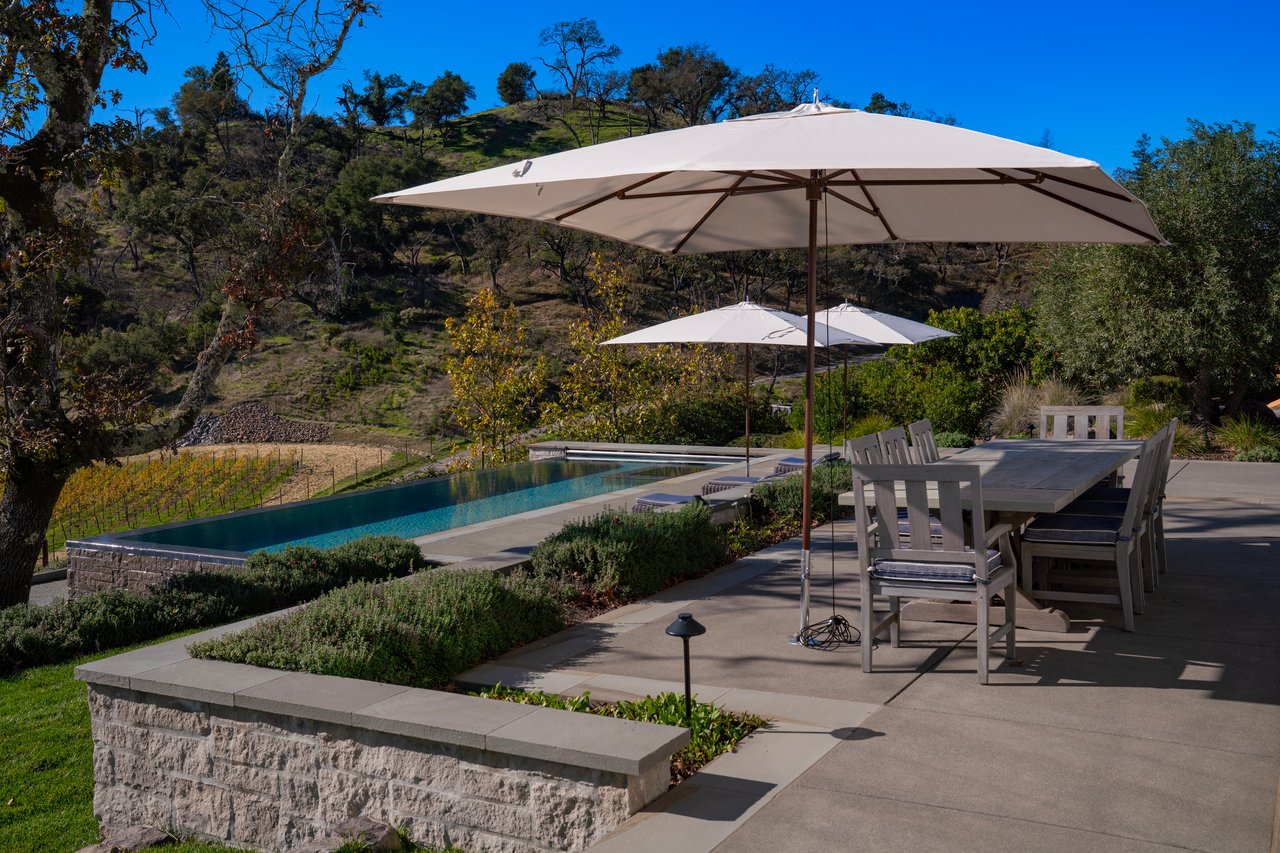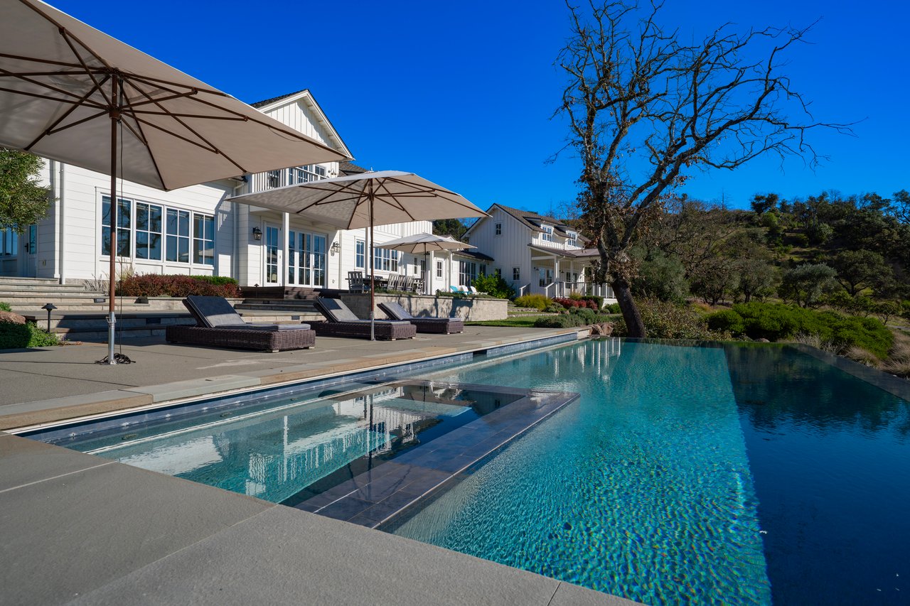 Outdoor living is thoughtfully integrated with landscape design that complements the surrounding terrain and incorporates native plant varietals. An infinity-edge pool and spa appear to merge with the horizon, while a bocce court, gas fire pit, and multiple seating areas create inviting destinations for gathering, relaxing, or simply taking in the quiet of the land.